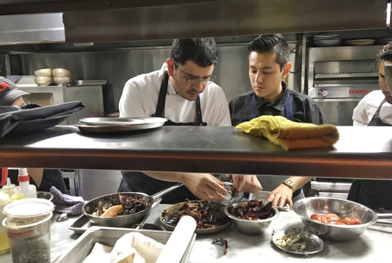 I was fascinated watching Rodolfo take his team through the process of flavor building to get each of the moles to “just right”. Since Rodolfo is only planning to be at Poleo a week here and there, it’s important that the staff understands Rodolfo’s palate and that the food and flavours being served properly represent him. Chef Rodolfo has brought over some of his kitchen team from Origen in Oaxaca, so he’s confident that they understand what he’s trying to achieve. Nevertheless, as the team watched and tasted through the process, they were also furiously taking notes and photos.