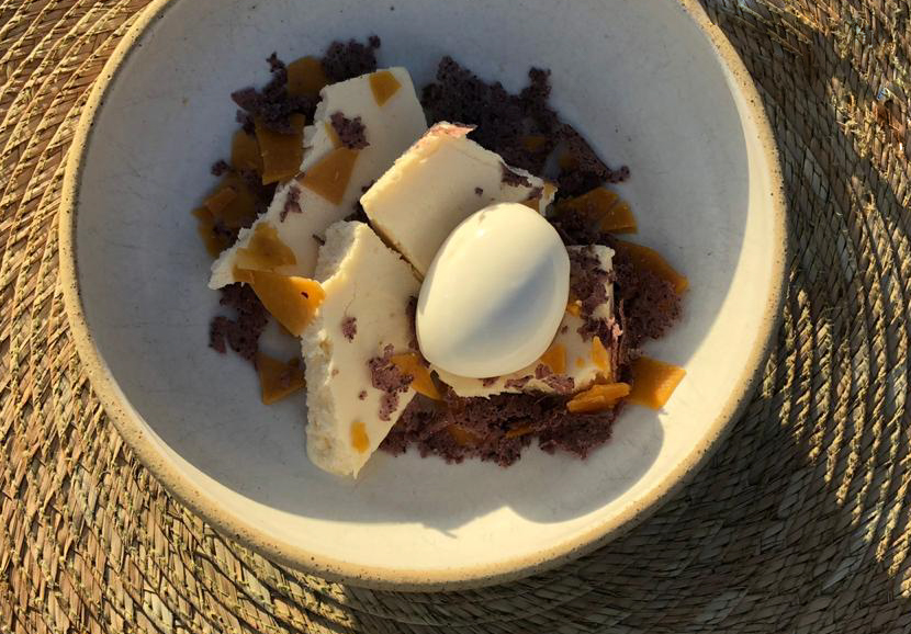 3rd course – Tetela filled with garbanzo bean puree and wrapped in a charred cabbage leaf. The smooth savouriness of the bean puree coupled with the char from both the cabbage and tetela contrasted perfectly from the pea dish before. The mezcal from Durango accompanied the bites so well.
