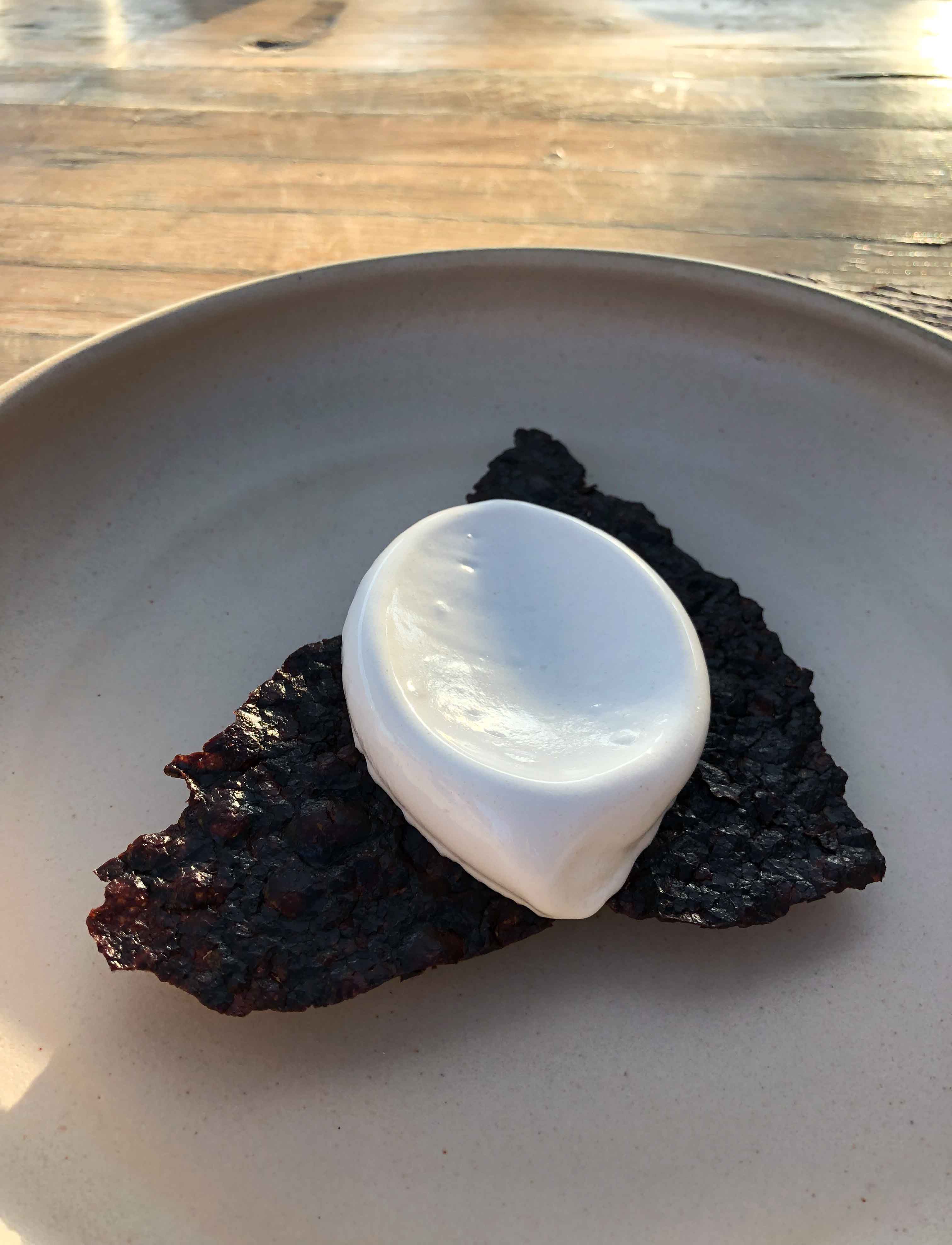 6th course – Mussels with mushroom dashi, topped with epazote. After the pea dish, this is the other that blew me away in its seeming simplicity but immense depth of flavor, where the saline ocean met the rich earth.