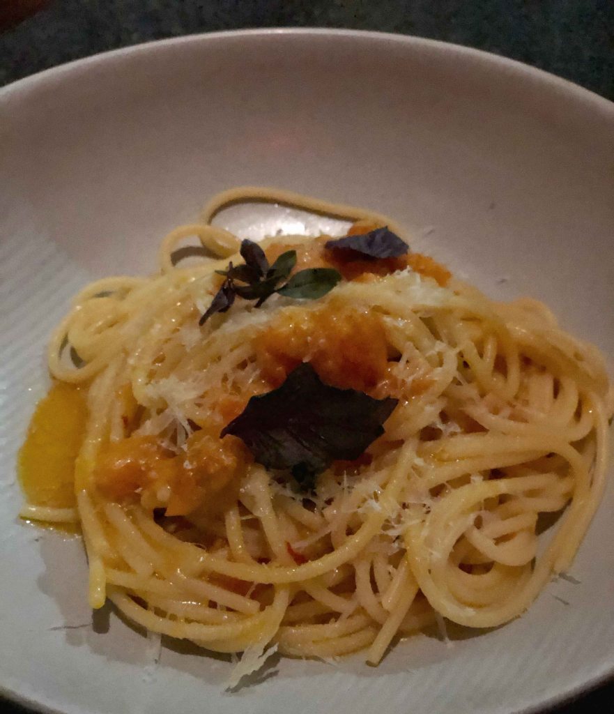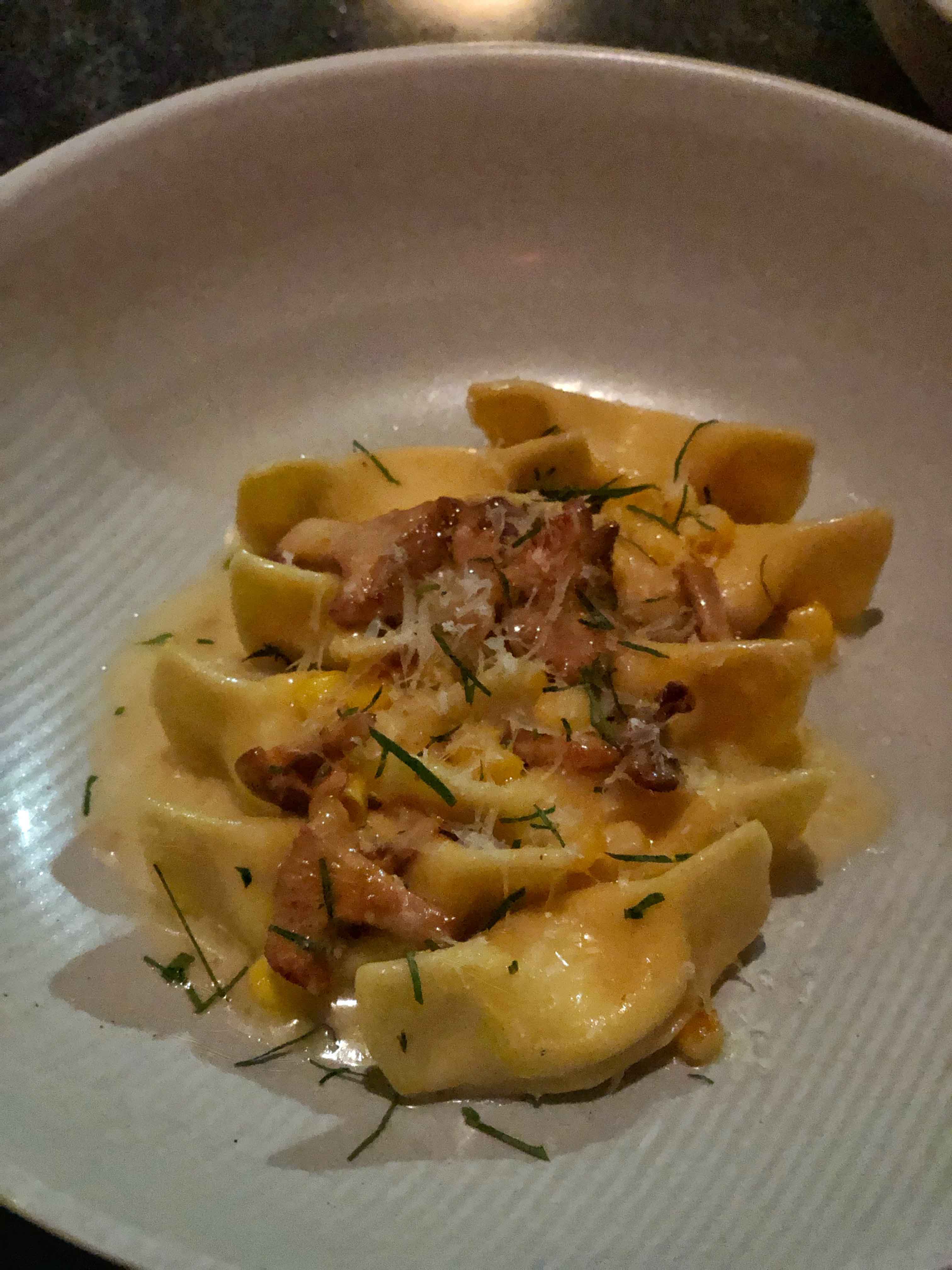 Kaitlyn loves pasta, so we ordered two, the caramelle pasta filled with a lemony marscapone cheese and topped with chanterelles and corn. The simply flavoured spaghetti with sungold tomatoes and lemon basil tasted like the epitome of summer on a plate.