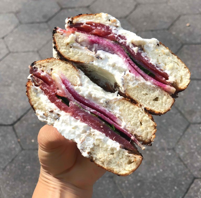 The next morning, we woke up early and took the subway to Columbus Circle to grab some breakfast treats to enjoy in Central Park. We stopped at Bouchon Bakery to pick up some buttery pastries and a mortadella&cheese mini breakfast sandwich from Bang Bar.
