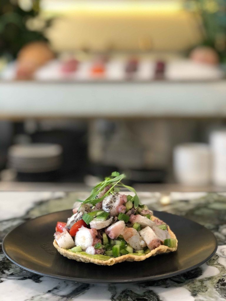 Tai snapper ceviche with sweet notes of pineapple and crunchy corn nuts, followed by 2 stellar tostadas, octopus and shrimp aguachile.
