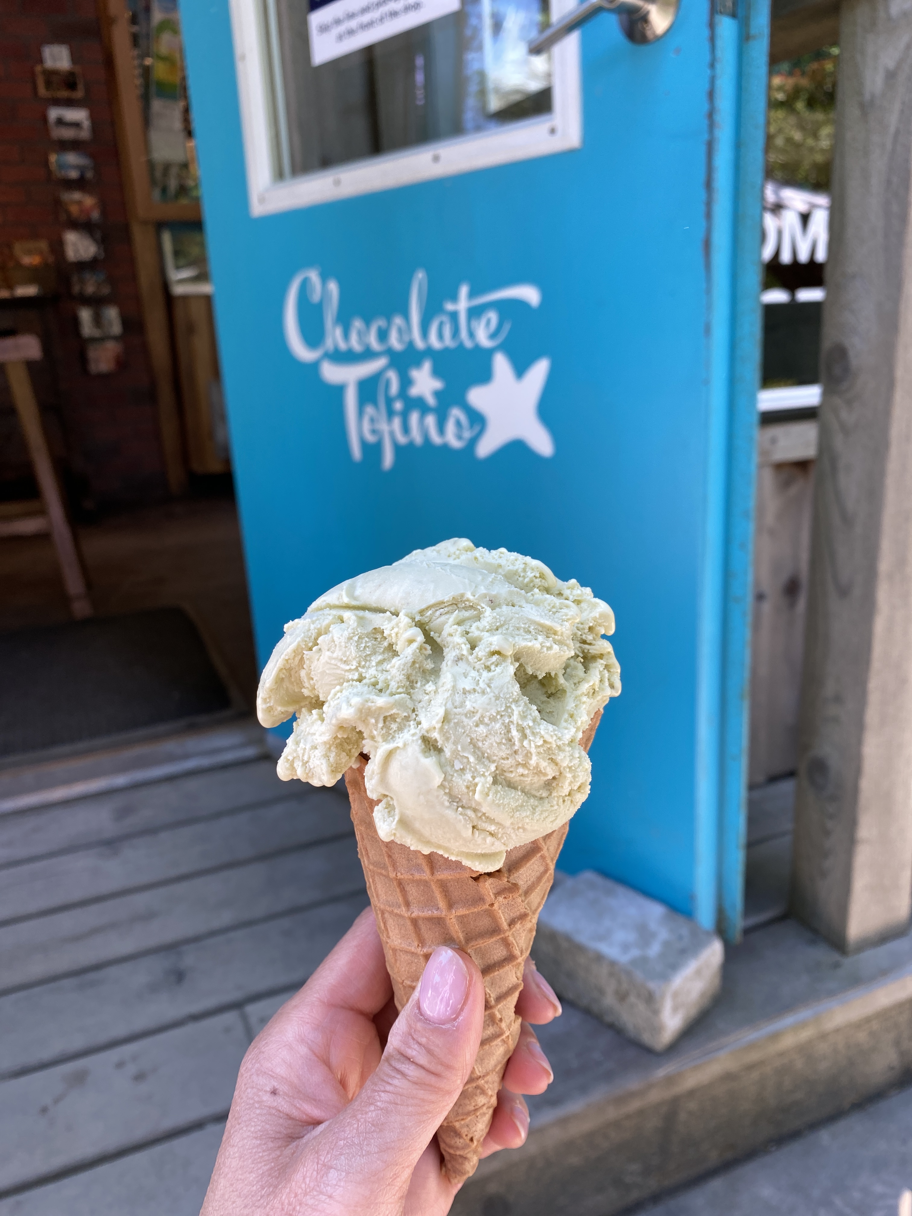 We were famished after our exciting ocean adventure so we walked to Bravocados for a yummy (vegan) lunch and to Tofino Licks for a sweet kick to top off the afternoon. While the fudge brownie with caramel sauce ice cream was more photo-worthy, the Sobo Key Lime Pie ice cream was the winner for me. Can you tell how obsessed I am with Sobo’s Key Lime Pie?