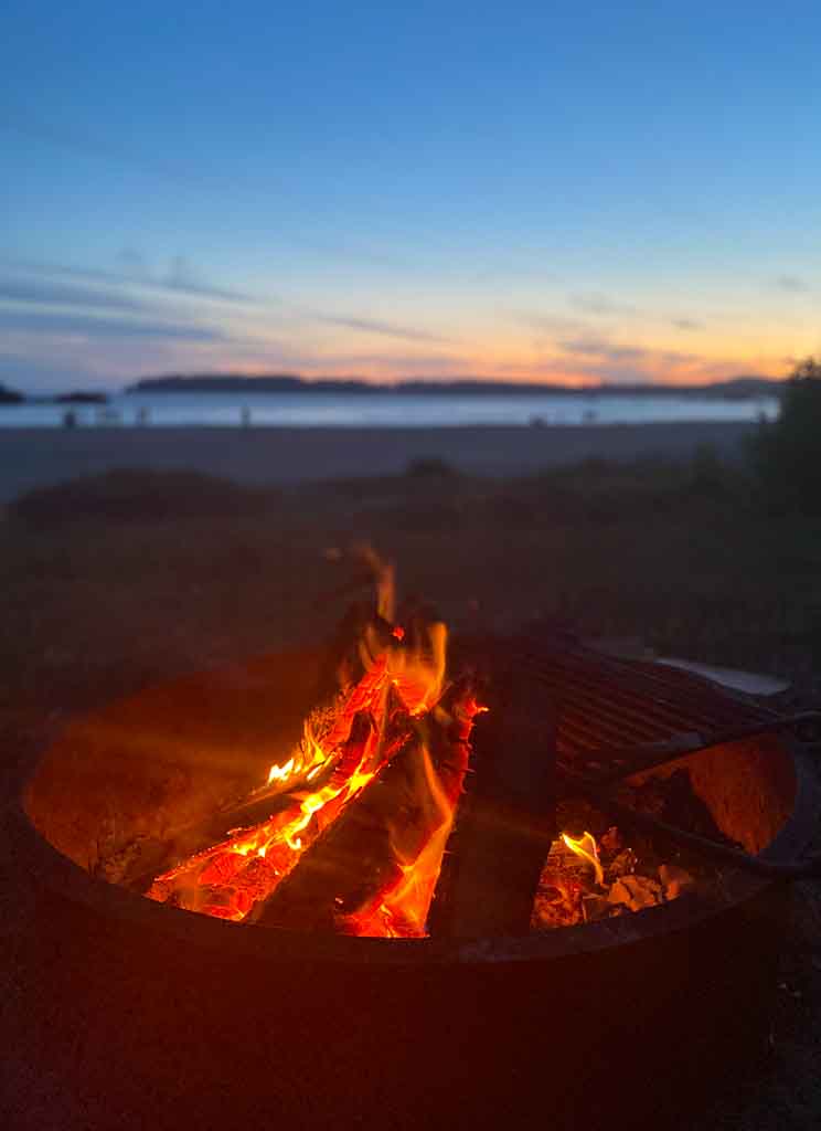 One last try at an epic Tofino sunset, and the weather looked like it was cooperating. We chose to return to Mackenzie Beach because fires are allowable and that seemed like a perfect way to cap our evenings in Tofino. On our way out, we stopped at Wildside Grill for an easy dinner of fish & chips, gumbo and chowder.To finish we grabbed a yummy pistachio gelato from Chocolate Tofino. Indulging in 2 ice creams a day is a sure sign of being on vacation!