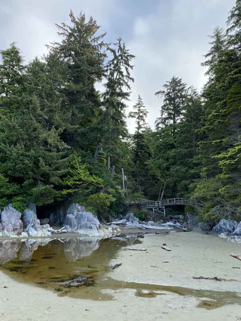 After a quick loop around the 2 sides of the trail our next stop was Chesterman Beach. We were lucky to arrive at this gorgeous location just as the clouds started lifting so we were able to witness the full beauty of one of the best beaches in the world (IMO). After so many months of wearing a mask all the time, it was nice to get outside and breathe the fresh air in.