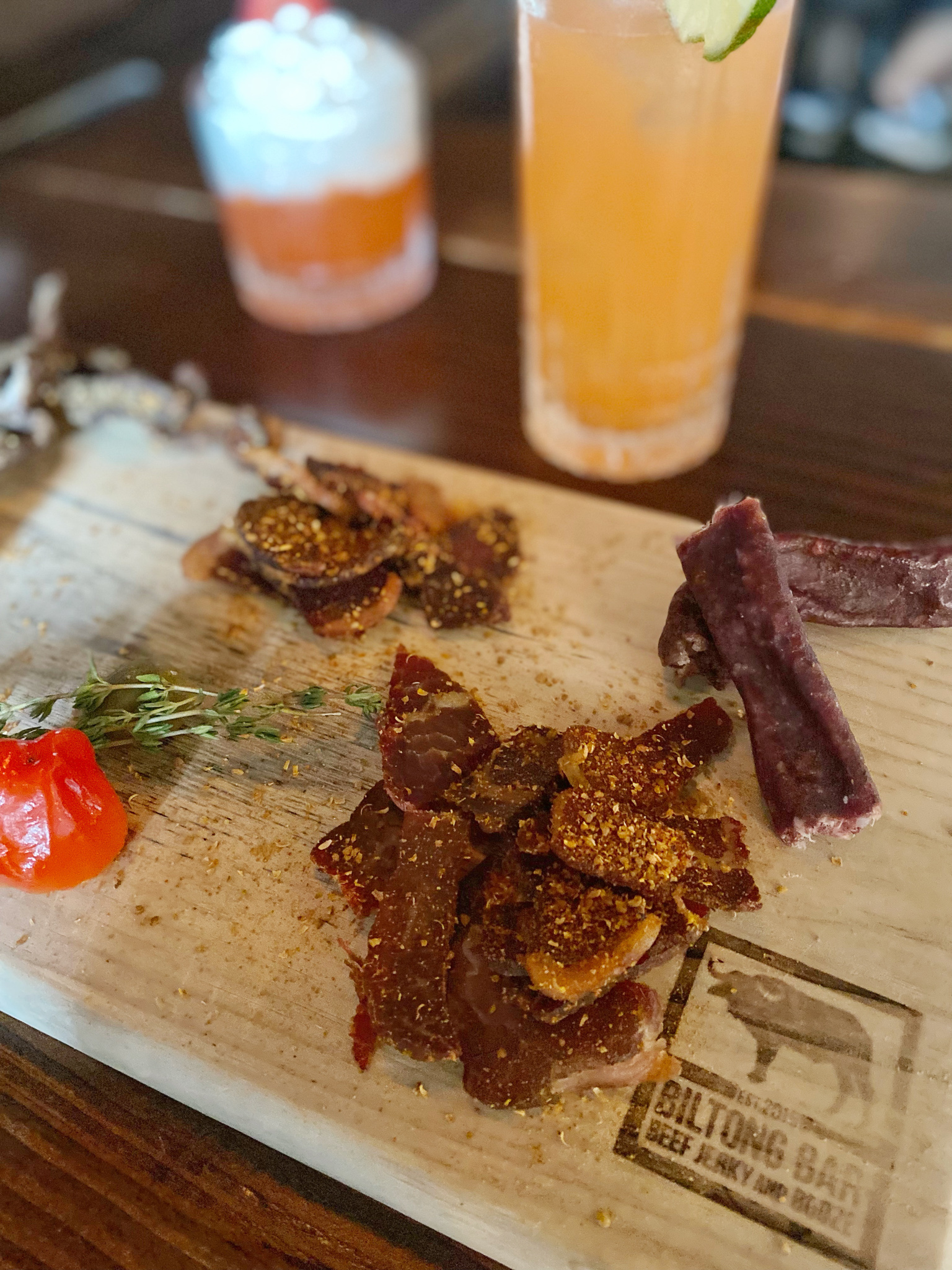 On recommendation, I grabbed a few tacos from Minero (fried catfish, cauliflower with salsa macha, and al pastor) and then stopped at Biltong Bar to try their South African version of beef jerky with a cocktail.