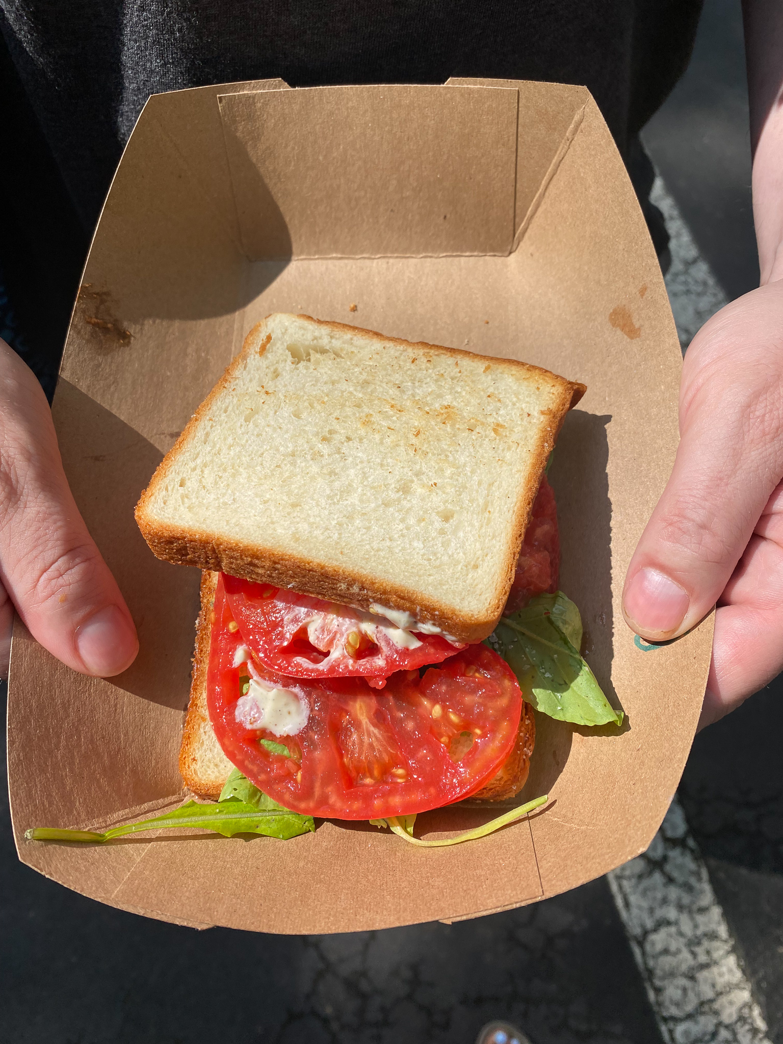 The produce looked so vibrant and I wanted it all. Of course, I had to “get my peaches down in Georgia”, but the real star of the market was the simple perfectly ripe tomato sandwich.