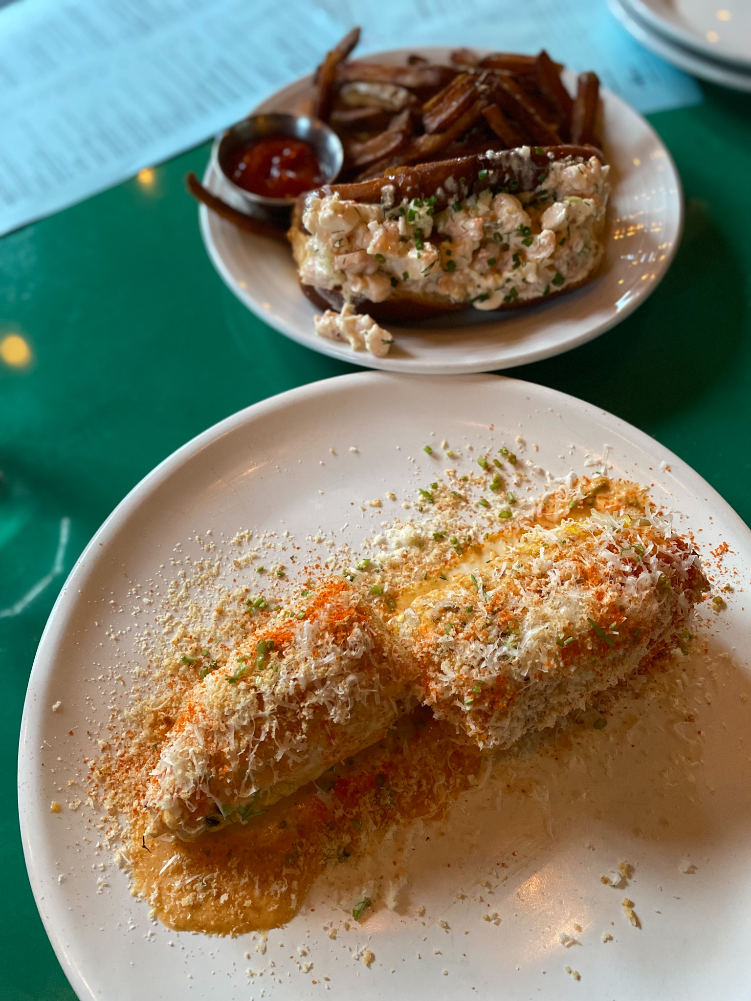 My selection of East coast/Gulf Coast oysters were fantastic and the shrimp roll was good but I’m always a sucker for corn on the cob, so my highlight was the Caesar elote with fresno chile, caesar dressing and grana padano.