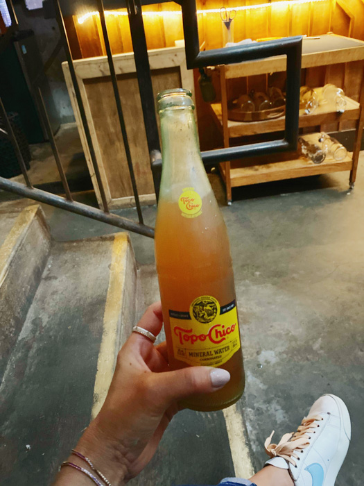 Tucked away in an old boiler room of a former commercial laundry company from the 20’s is Old Glory, a below level cocktail bar located off Edgehill Avenue (look for the gold triangle). I loved the exposed brick and funky brass & tile decor with a giant smokestack in the corner. Old Glory was busy on an early Friday evening when we arrived, but we were able to find a seat along the stairs. The cocktail list was very tantalizing, and I decided on El Diablo with mezcal, cassis and ginger mixed into a Topo Chico bottle, which I loved!