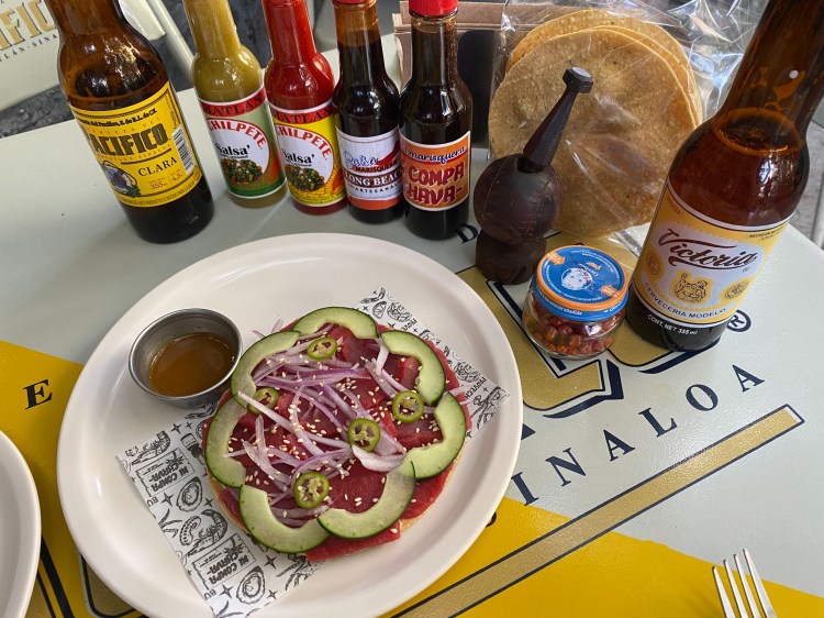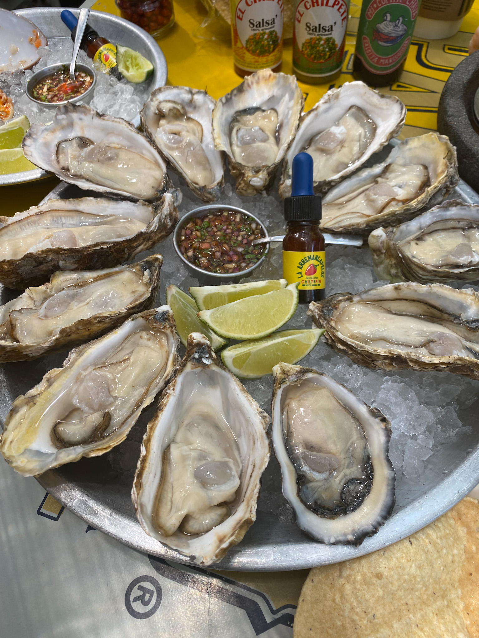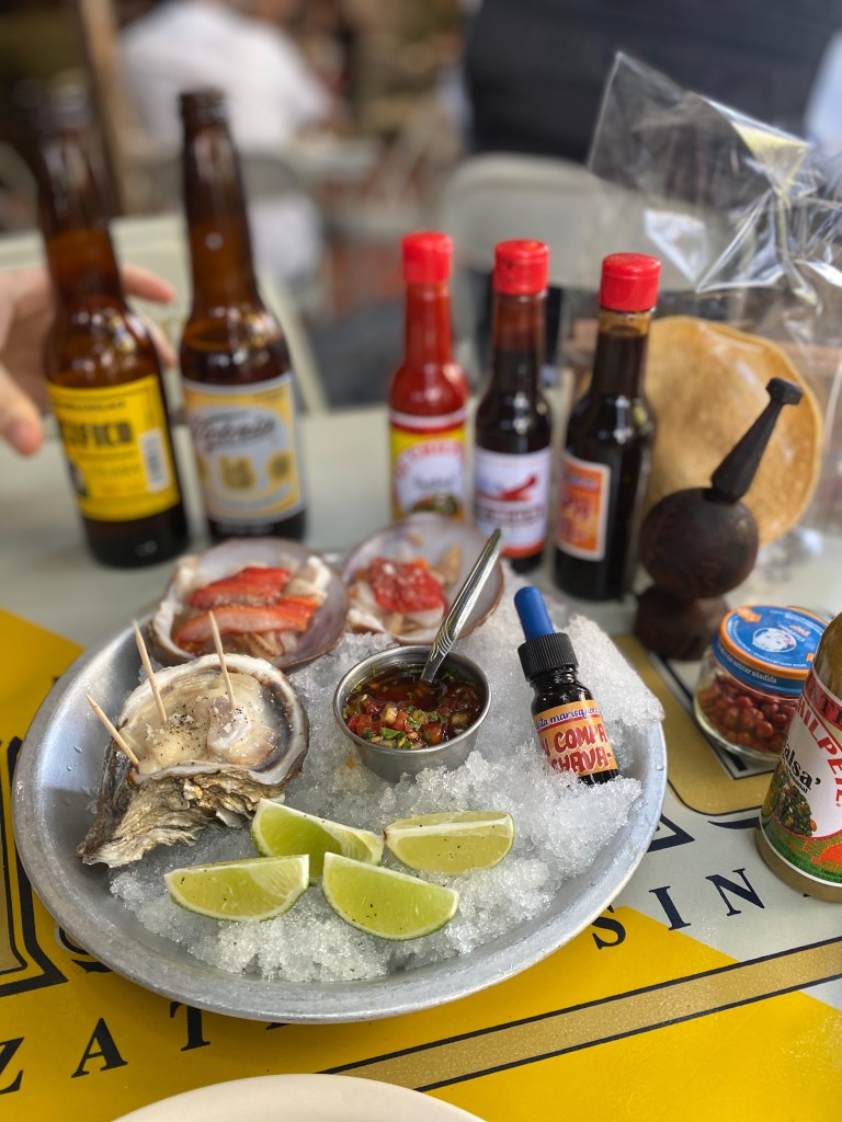 Mi Compa Chava is a bustling, open-air industrial space located also located in Roma Norte. It’s always busy but I’ve been lucky to get a table without a reservation on both my visits by beating the 1pm rush. The atmosphere is fun, almost like a party with corridos playing in the background and the servers performing a dance with their quick and efficient service. The must orders are the raw chocolate clams and a callo de hacho (scallop) tostada. Be warned that their portions are huge, as are some of their raw oysters.