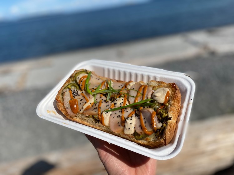The coconut-based seafood chowder at Fishhook is another great bowl of warmth on a cold day,. Their albacore tuna melt tartine with broccoli smash and smoked tonatta sauce is a nice take out option to take for a beach lunch.