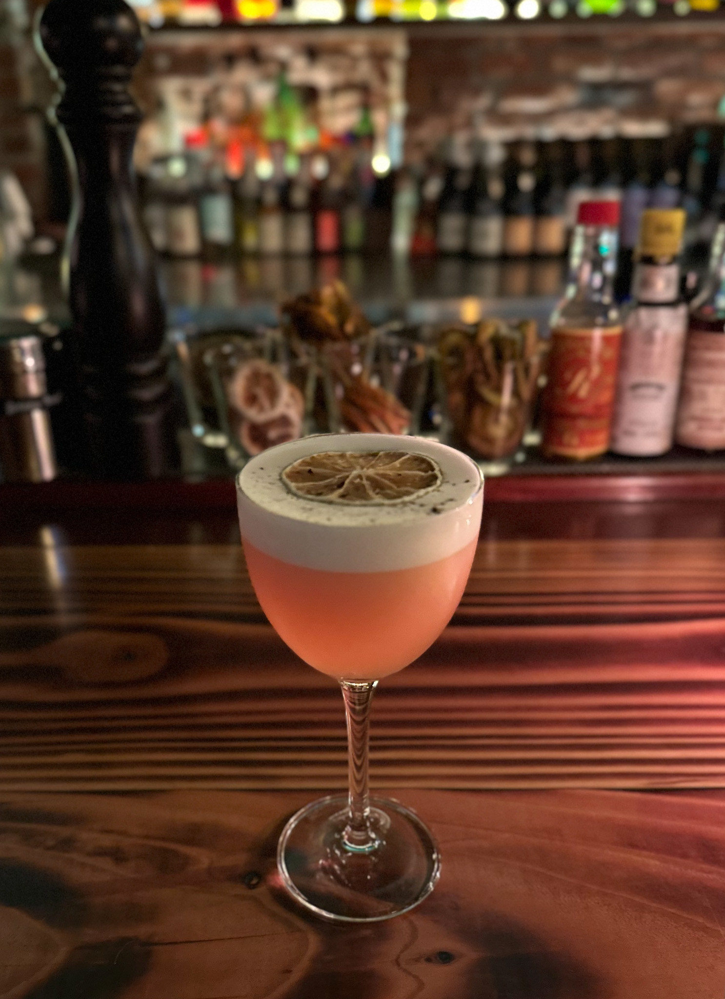 Citrus & Cane is a remodelled space upstairs of what used to be a seedy motel. As you walk in, you’re treated to a tropical vibe, with cocktails to match. I love how Citrus & Cane can make you feel like you’re in a sunny locale on a cold winter’s day with their vibrant and colourful creations. Their menu leans heavy on rum-based cocktails (which I can’t drink), but there are enough non-rum cocktails on the menu to keep it interesting for me.