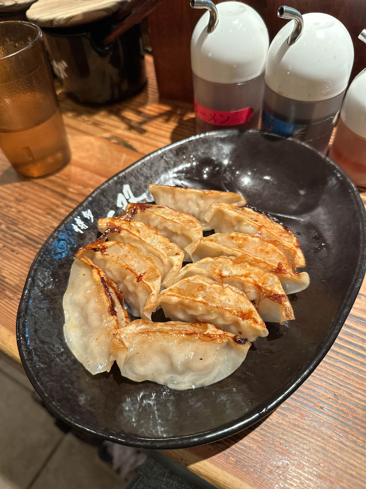 Hakata Issou’s rich foamy pork broth was delicious for the 1/3 of the bowl and then it became over-powering for me. I finished the wonderfully cooked noodles but had to push the rest of the bowl away. Don’t get me wrong, I’m not saying Issou’s rich and complex broth wasn’t delicious, but it’s heavy, and on the verge of funky. I think had I not had the 7 course unagi tasting menu earlier in the day in Abiko, I would have appreciated it more. The gyoza were plump and juicy with a delicate wrapper that held it all together nicely.