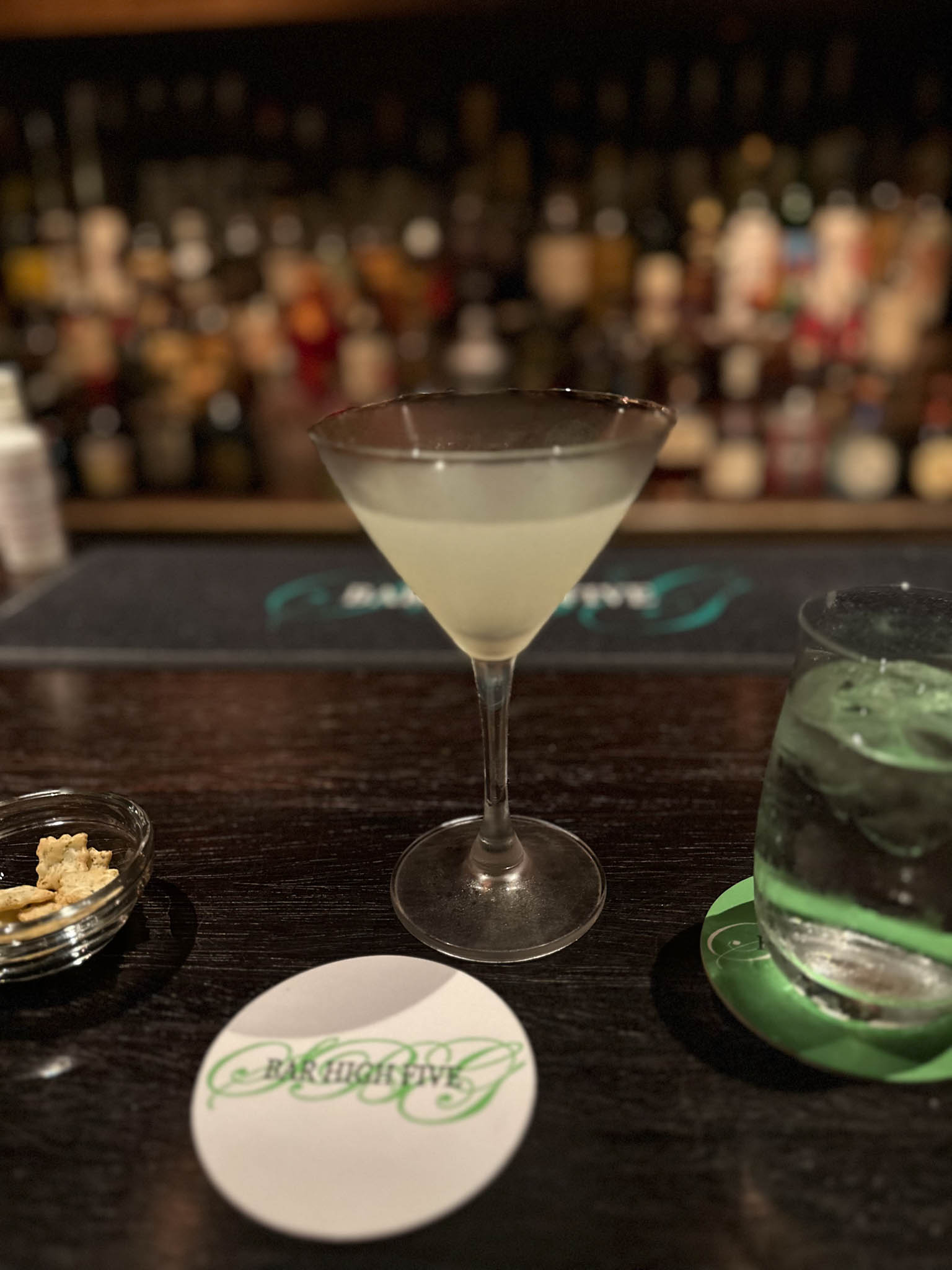 With time for 1 last bar on this leg of my Tokyo stay, I decided to return to a legend,. I’ve been to Bar High Five 3 times before and have been served wonderfully delicious cocktails. In the past, I’ve enjoyed that at the bar, guests are served attentively by staff who pay special attention to your needs and will happily engage in conversation. Bar High Five was the first in Japan (that I can remember) that hired English speaking staff (mostly international) for this purpose and it’s one of the reasons why I’ve felt so comfortable there. I was surprised when I arrived to see the bar’s owner Ueno-san behind the bar, which he hadn’t been on my previous visits. My first drink was a wonderful refreshingly delicious citrus-y gin cocktail that I feel I’ve been served there in the past. For my second drink, my request was for Ueno-san could make me something special. I was served the White Lady, his signature drink. Both cocktails were wonderful but perhaps lacked the “wow” factor I’m now crave.