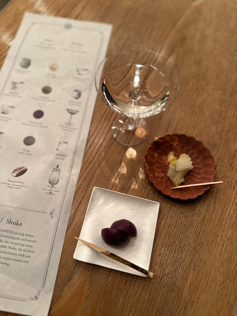 Tired from the constant crowds, I made my way back to Ginza for a quiet hideout. Higashiya is a delicate & serene Japanese confectionary shop that serves beautifully presented wagashi normally paired with tea. When I went to book my reservation, I noticed they did a cocktail pairing as well, and because I was cocktail focused for this part of the trip, I decided to reserve this option.