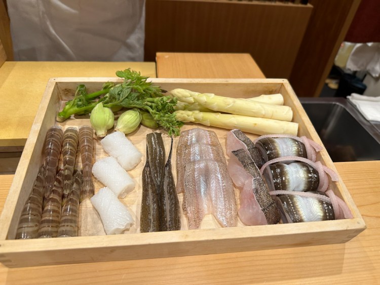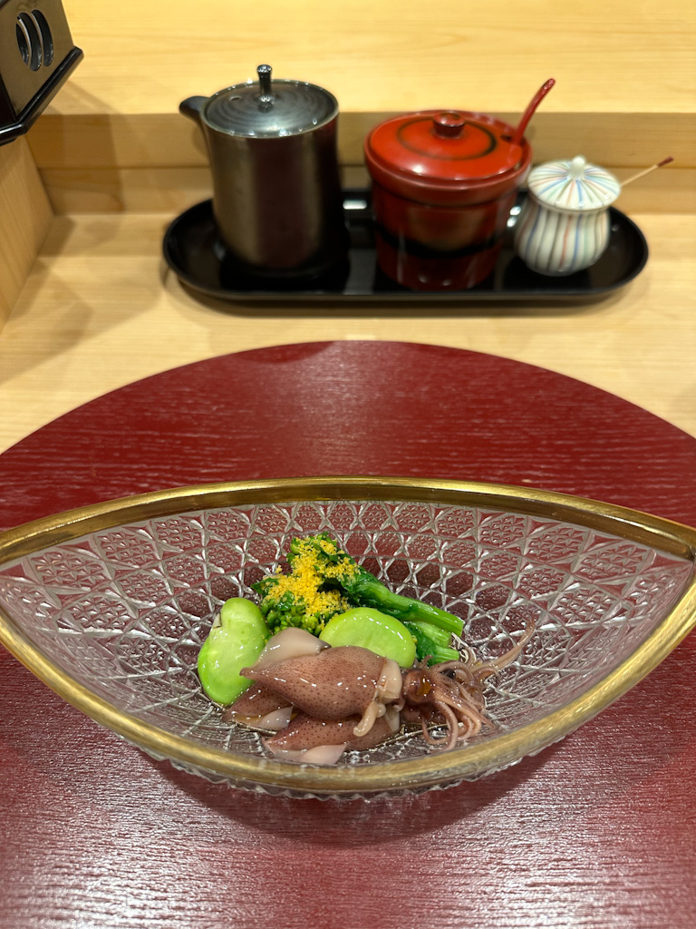 Shunkeian Arakaki seats only 8 people at a beautiful cypress wood bar. On my visit there was only me and a couple, so I was ready for another serene experience focused on Arakaki-san’s preparation of our meal.