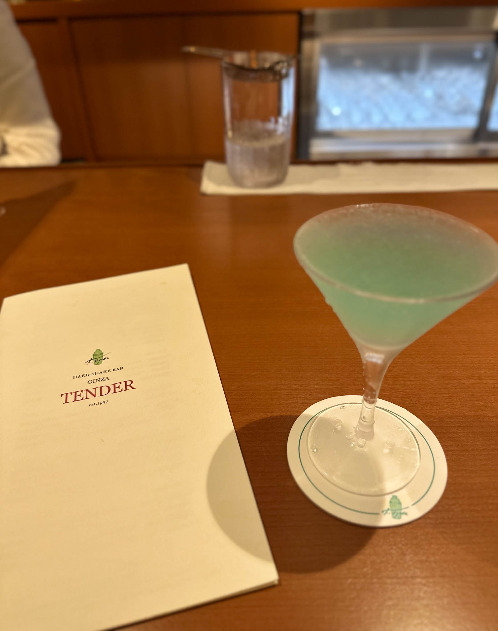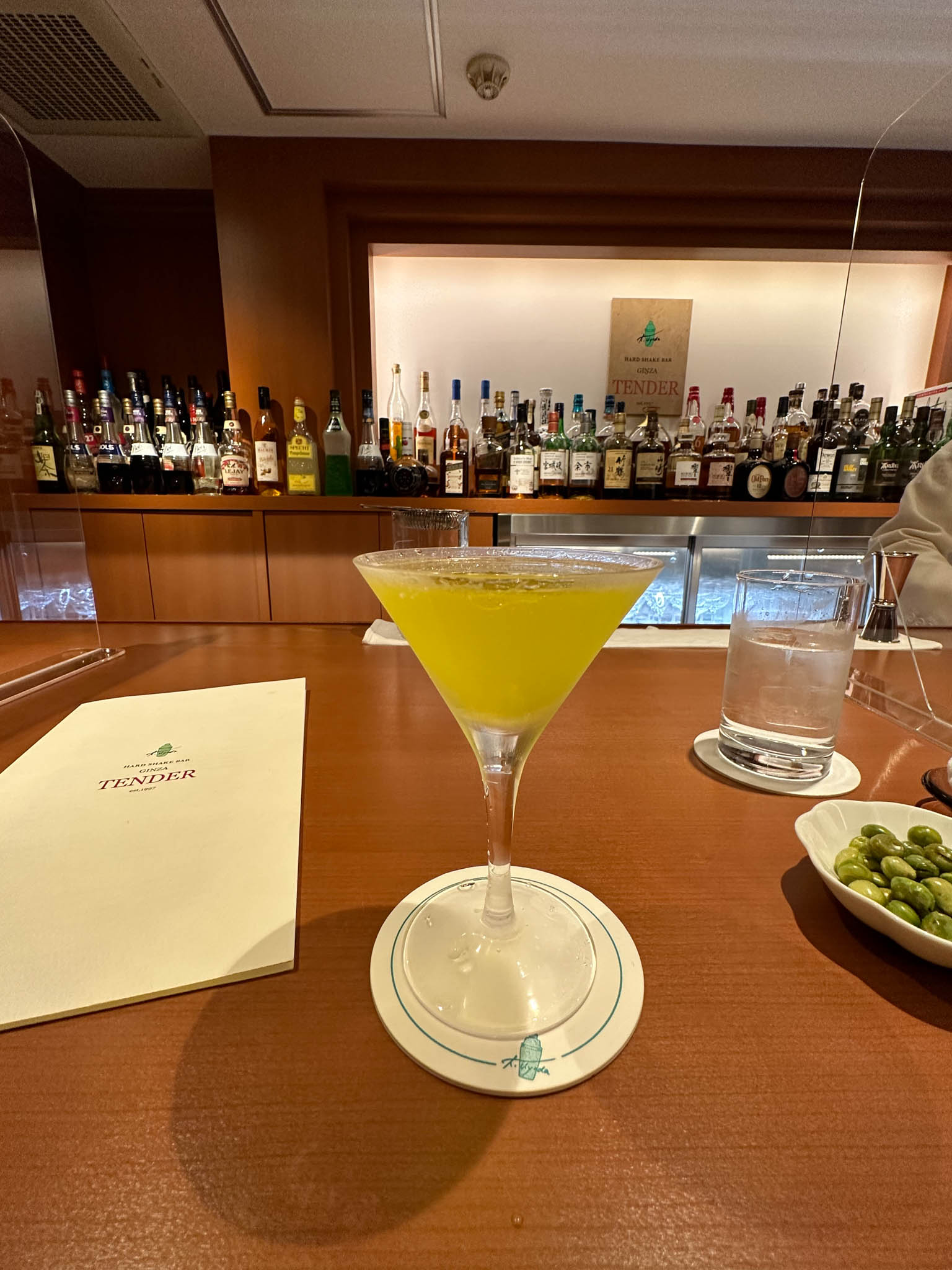 With food in my stomach, I was ready for my first cocktail in Japan. Tender Bar is located on the 9th floor of one of Tokyo’s typical narrow multi-story buildings. Walking off the elevator, I hesitated as I reached the door of Tender as it felt like I’d come to a private club (uninvited). It was just after 10 when I arrived and as I was sat at the bar, I was given clear instructions that last call was at 10:30. I’d just come off a chaotic travel day so I knew there would be no problem drinking my first cocktail quickly in time to order my second before last call.