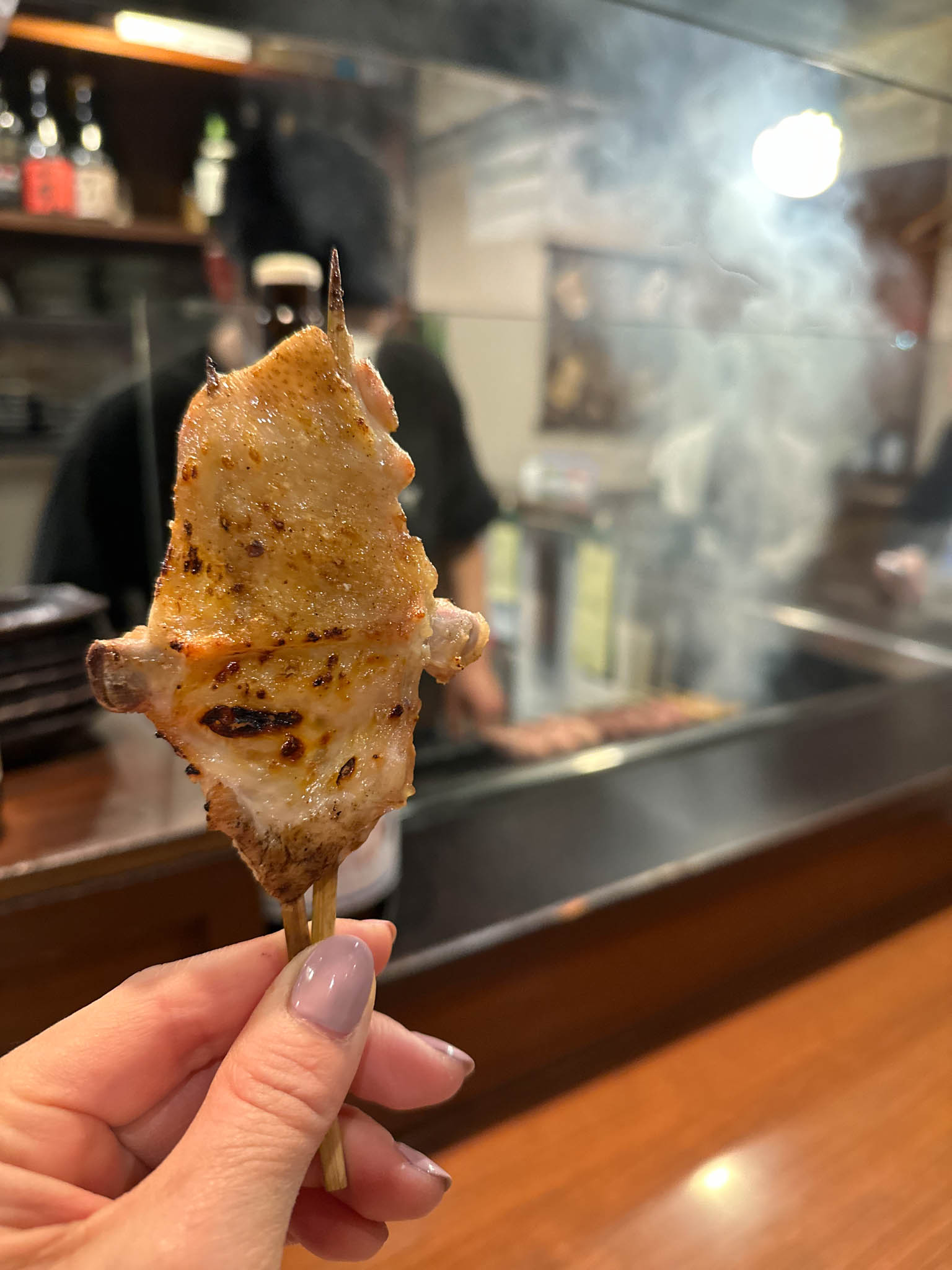 Feeling tired of being surrounded by hoards of tourists and hearing english everywhere I went in Tokyo, I decided that for dinner, I wanted to get off the beaten track. After my late afternoon of cocktails, I was craving fatty proteins, and decided yakitori would be perfect. Instead of asking for suggestions from the hotel, my parents and I started walking down the quieter back streets in Shimbashi and let our noses lead the way. We opened up a few doors here and there until we found a deliciously smelling yakitori restaurant packed with locals. The thing about most neighbourhood restaurants in Japan is that there’s a good chance the food will be delicious, or it wouldn’t survive. We took the chance knowing this and we were rewarded. I was happy to be with my parents who navigated the menu in Japanese for me. We ordered skewers of various parts of chicken along with some other izakaya staples. I don’t love chicken and never order it at home, but yakitori, slow cooked over charcoal, each piece glistening with fat and perfectly seasoned simply with salt is another one of those things that’s high on my list of musts on every Japan trip.