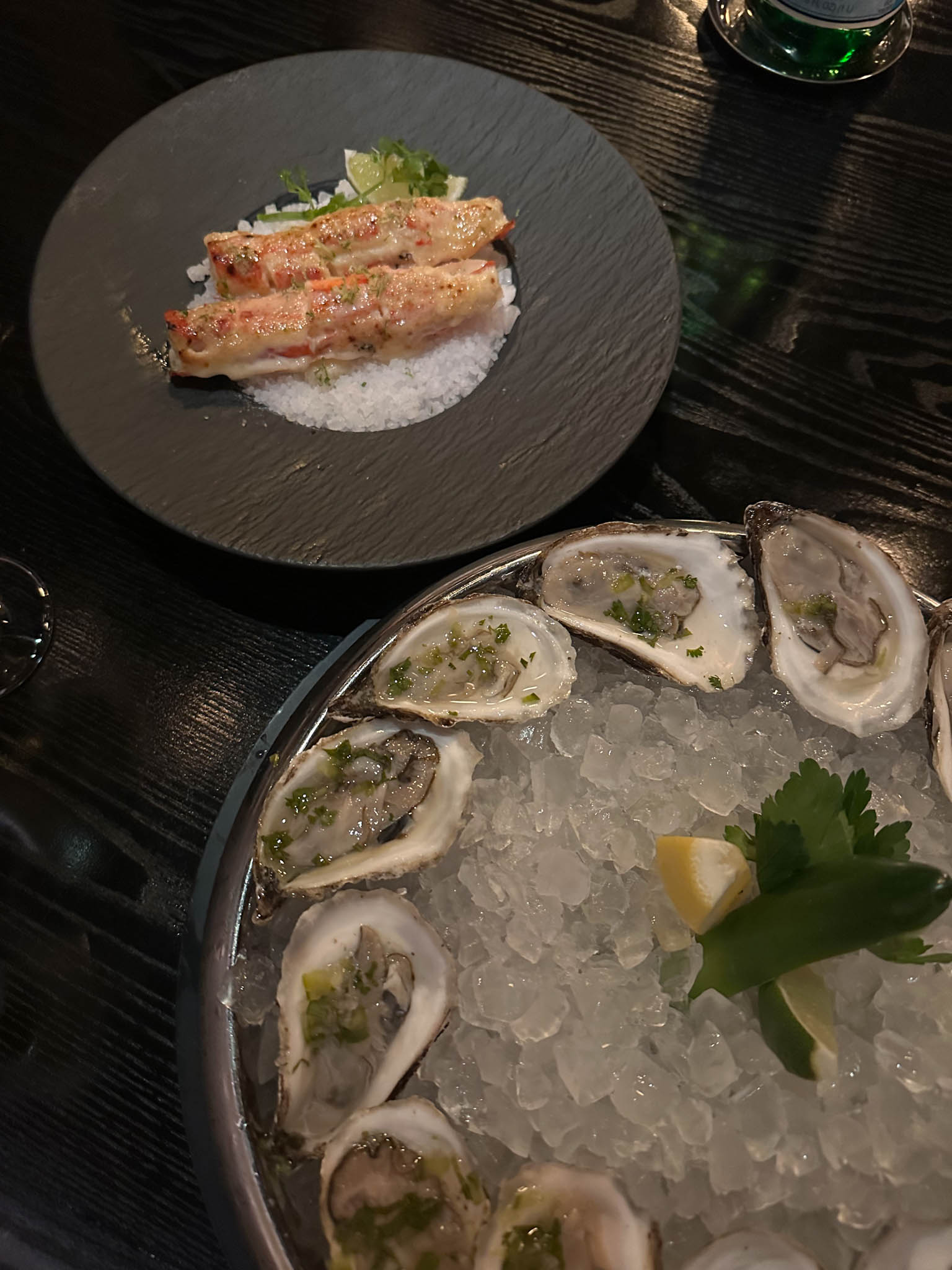 Appetizers consisted of oysters with a jalapeño mignonette and a coal roasted king crab. That was followed by a melt in your mouth Takamori drunken wagyu tataki.