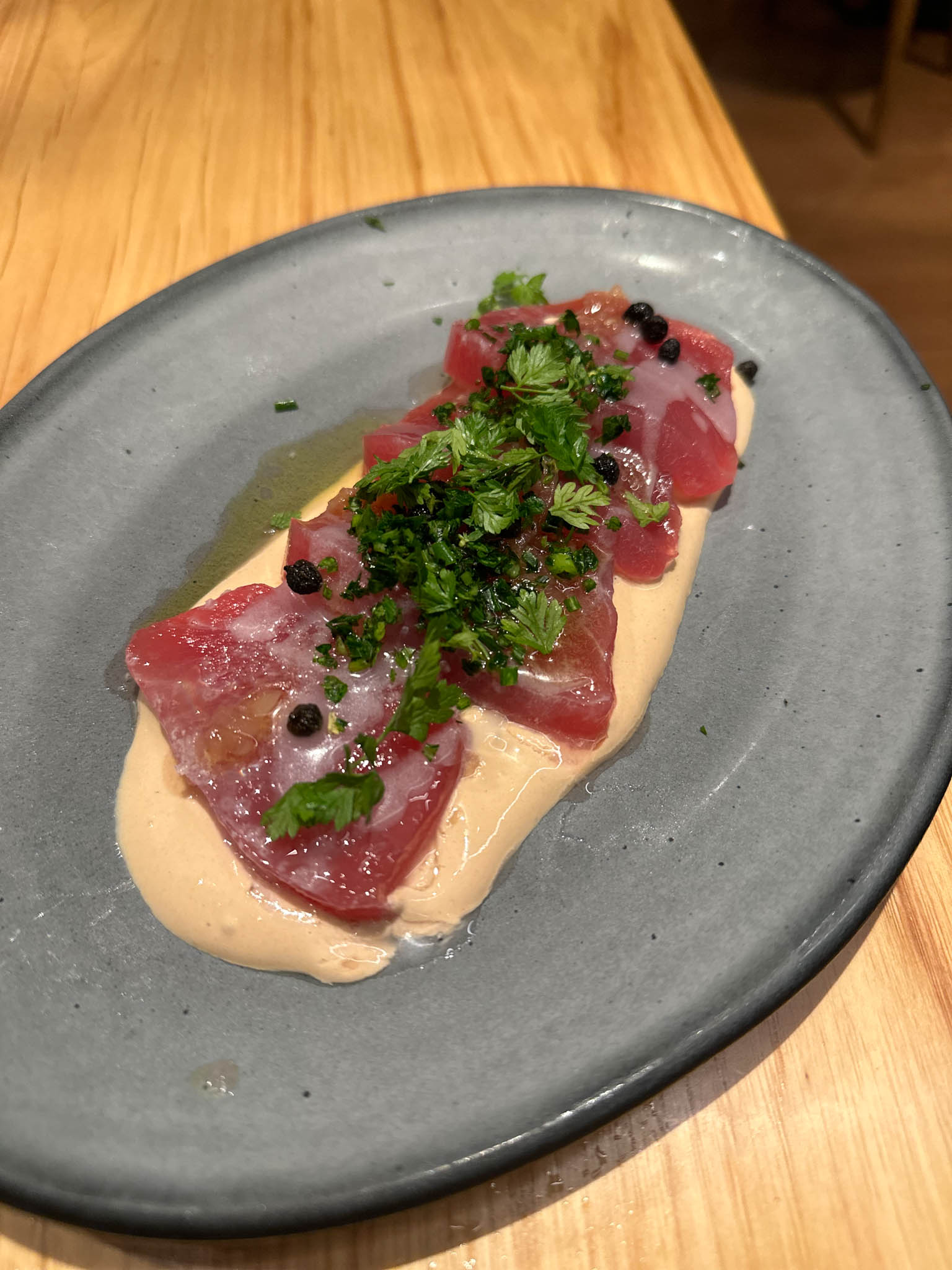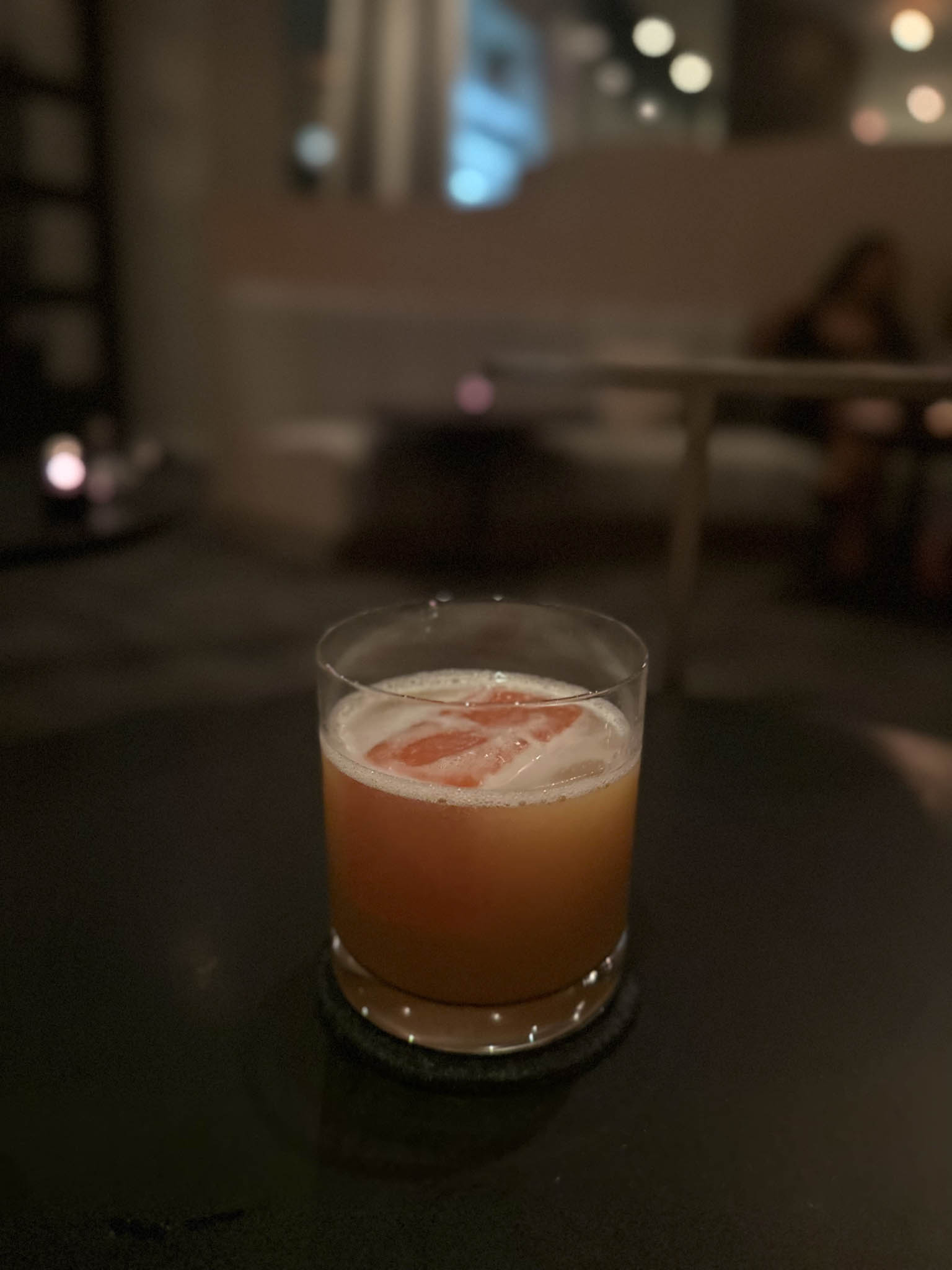 My birthday wouldn’t be my birthday without starting. the night with a cocktail. I’d been to James Beard Award winning Violet Hour on an epic bar crawl when I was in Chicago a few weeks previously. From my memory of the evening, I enjoyed the candlelit space with its long marble bar and marked it as one to return to. I knew I had an ambitious meal ahead, and didn’t want to overdo it so i paced myself even though I wanted to indulge through Violet Hour’s creative menu. I chose the Vibe Check, a tequila based, espresso martini-esque cocktail with amaro, licor 43, chile and nutmeg. It was the perfect pick me up which I drank a little too quickly, (so much for pacing myself). For my 2nd I asked for a bartender’s choice and was served a lovely and very complex gin based sour garnished with burnt lemon & rosemary.