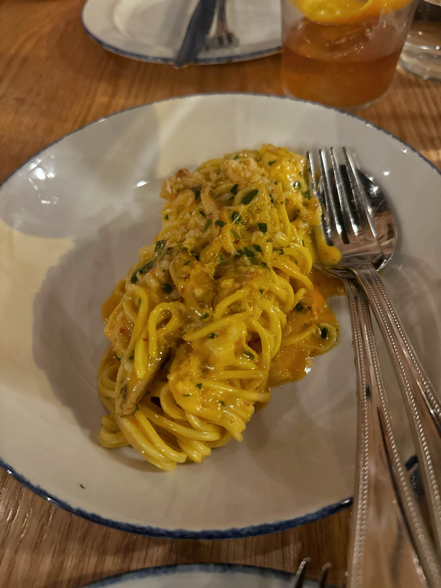 We started with roasted broccoli with crunchy bits of fried potato and a Jonah crab salad with waffle fries. The tagliatelle with Dungeness crab and chili butter was a dish that combined all of my favorite flavours and their showstopper best dish. I left dinner wishing my neighbourhood had a restaurant like Giant.