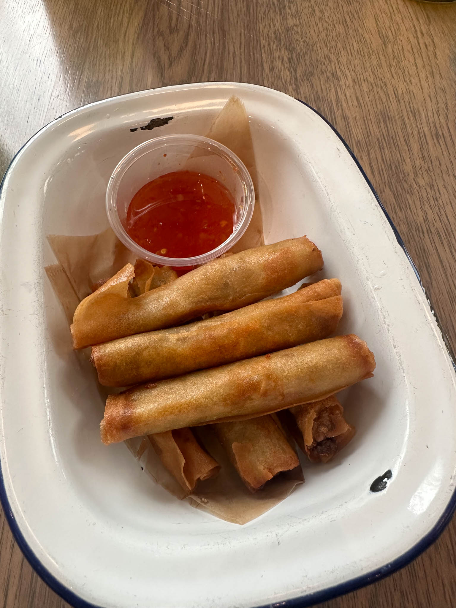 Ordering at the counter, I was enticed by the fabulous looking baked goods but passed on those for a plate of lumpia, (cigarette sized Filipino spring rolls) to start. I was sad that the breakfast sandos were sold out, and instead settled on the chicken adobo and Filipino breakfast with longaniza sausage. Both dishes were pure comfort with seasoning unfamiliarly familiar. The star was the longaniza sausage which I could have eaten 3 portions worth.