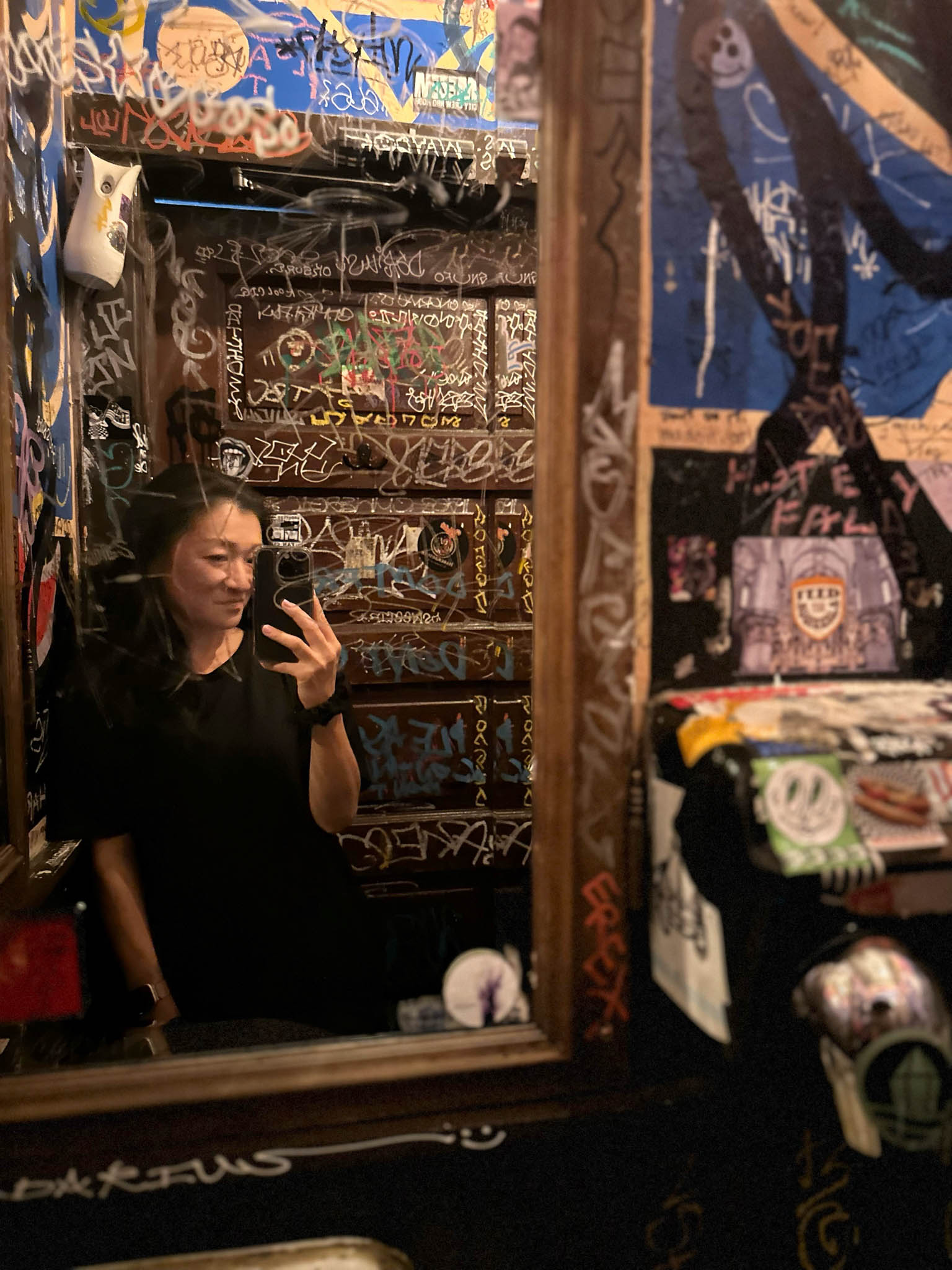 The rain started pouring in the early evening, so rooftop pre-dinner patio plans were thwarted. Plan B included a visit to the highly recommended Sportsman’s Club in Ukrainian Village. My 2nd choice turned out to be the perfect choice for a stormy July evening. The Sportsman’s is kind of divey in the best way, and serves deliciously balanced cocktails. I was curious about trying one of the tamales from the various sellers who came through the bar, but alas, I had dinner plans. Their bathroom was strangely reminiscent of Dino’s in Nashville, so I had to take the obligatory selfie.