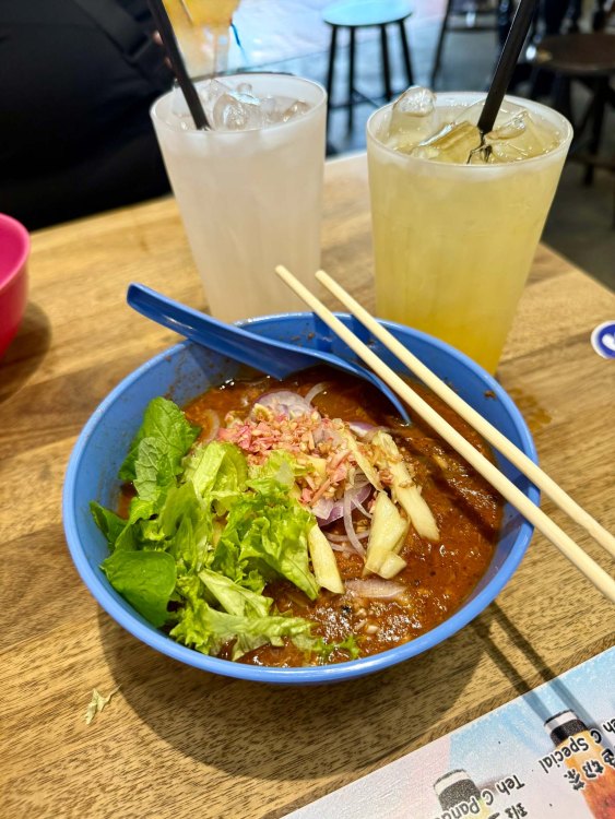 Asam laksa was a style I’ve been curious to revisit, but my bowl confirmed what I’d felt before. With its sharp, fermented tang and assertive fishiness, asam laksa remains my least favourite of the many laksas I ate on this trip. After eating my way from Singapore through Sarawak to Penang, my preference leans towards the richer, coconut and curry-styles.