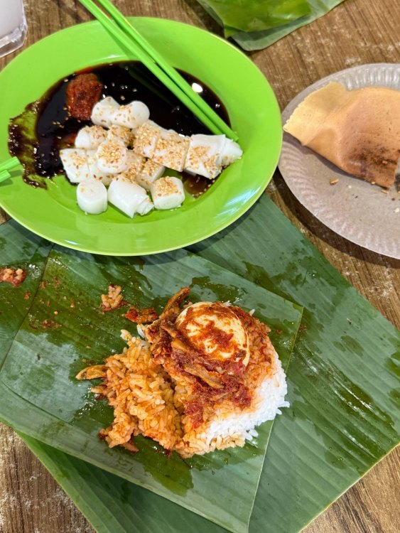I had returned for the nasi lemak parcels wrapped in banana leaf, one of my favourite bites from my last visit. Fragrant rice, punchy sambal, and crunchy dried anchovies made it just as satisfying as I remembered. My friend ordered cheung fun slicked with dark soy, and I added a peanut pancake for good measure.