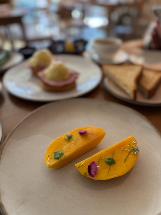 The next morning, we eased into the day with brunch at Hide. Calm, elegant and unhurried, it was exactly what we needed. When I chose the restaurant I did so after seeing their famous mango dish, (which looked so simple but was complex and delicious). As we sat with a luscious spread in front of us, my mom said it all felt so “rich” (her way of saying luxurious). I realized this choice was the perfect way to begin our day.
