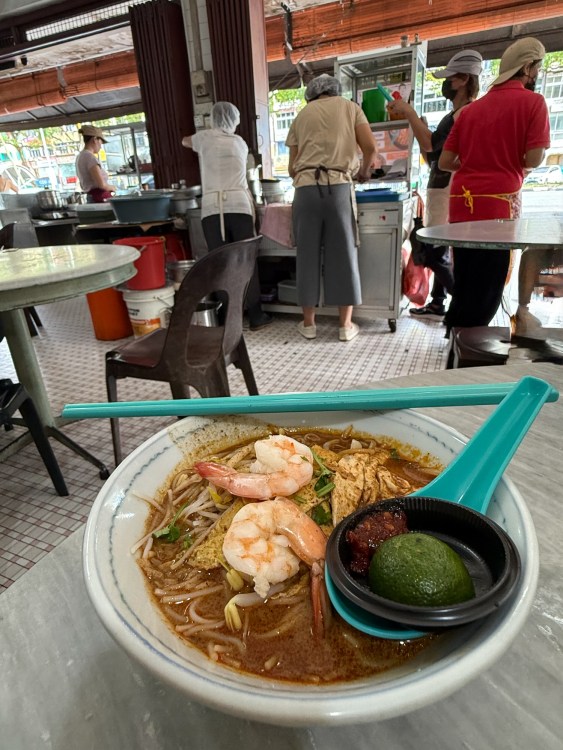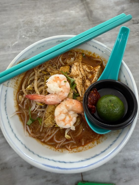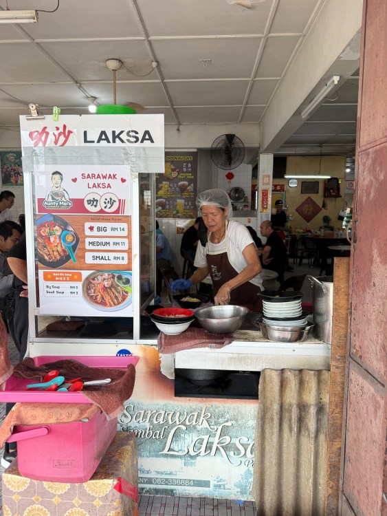 As I began researching the food culture of the area, Sarawak laksa was mentioned again and again. Further investigation led me to Anthony Bourdain’s Borneo episodes of “No Reservations” and “Parts Unknown” where he famously refers to this laksa as “breakfast of the gods”. In these episodes filmed in Sarawak, he visits the same spot for breakfast, surrounded by locals, and treats this bowl of laska not as a curiosity but as a key to understanding the place. In true Bourdain fashion, it wasn’t framed as exotic or rare, just essential.
